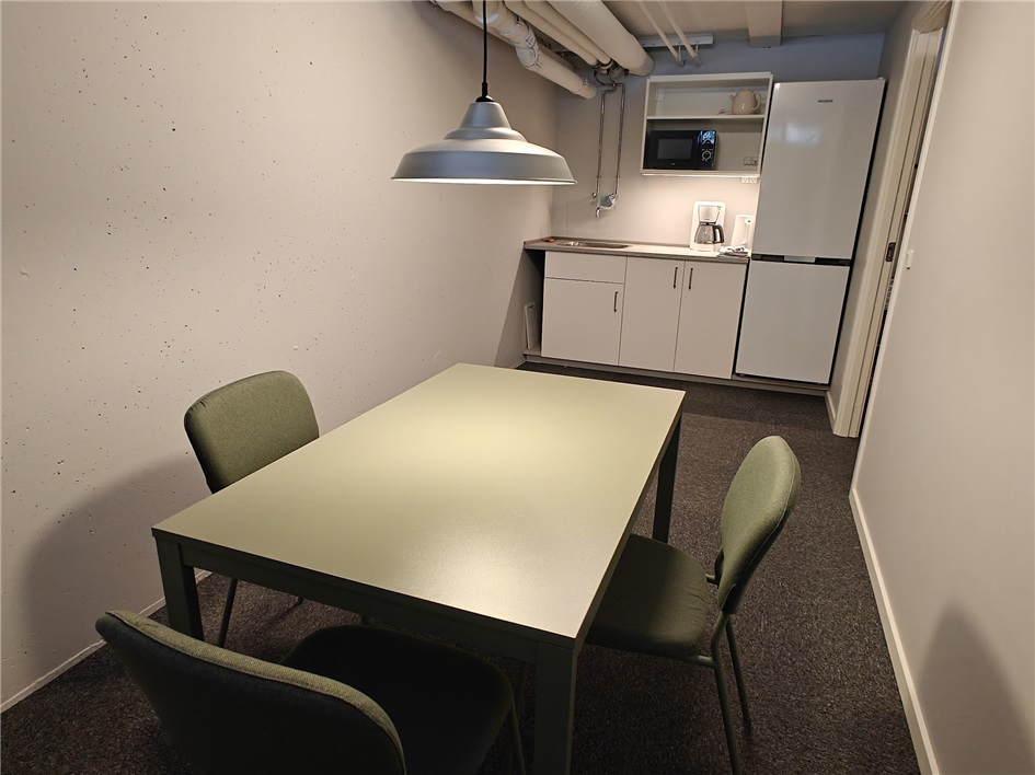 I det store rum er der opstillet skabe, og Bestyrelsen har mulighed for at afholde møder.